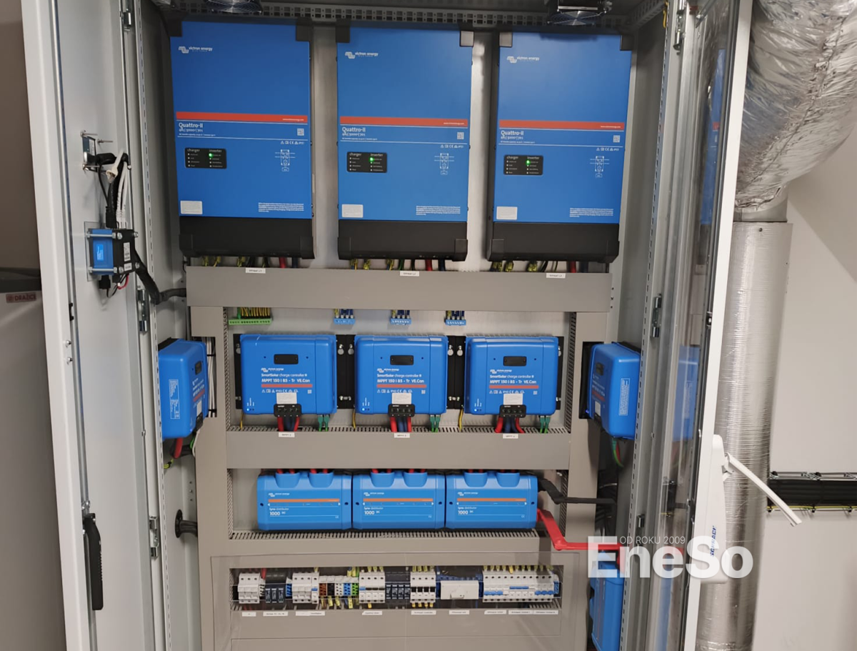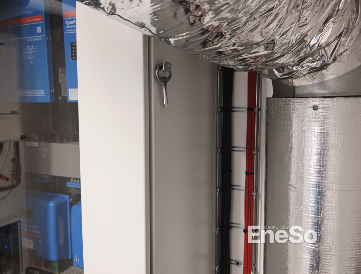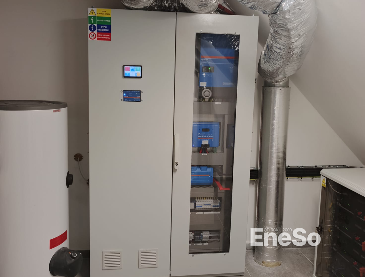Instalace fotovoltaického systému o výkonu 9,35 kWp (panely Einnova Solarline mono ESM-550S) a akumulaci 67,2 kWh (PylonTech US5000C) s využitím technologie Victron. Instalace paralelně zahrnovala také montáž fototermického systému (panely Suntime), rekuperace vzduchu (Atrea), tepelného čerpadla (Mitsubishi Zubadan) s akumulační nádobou PAST a wallbox pro nabíjení elektrovozidel s následnou integrací do zapojení do elektrického sítě, zprovoznění a spuštění celého systému. - Fojtka - 2023