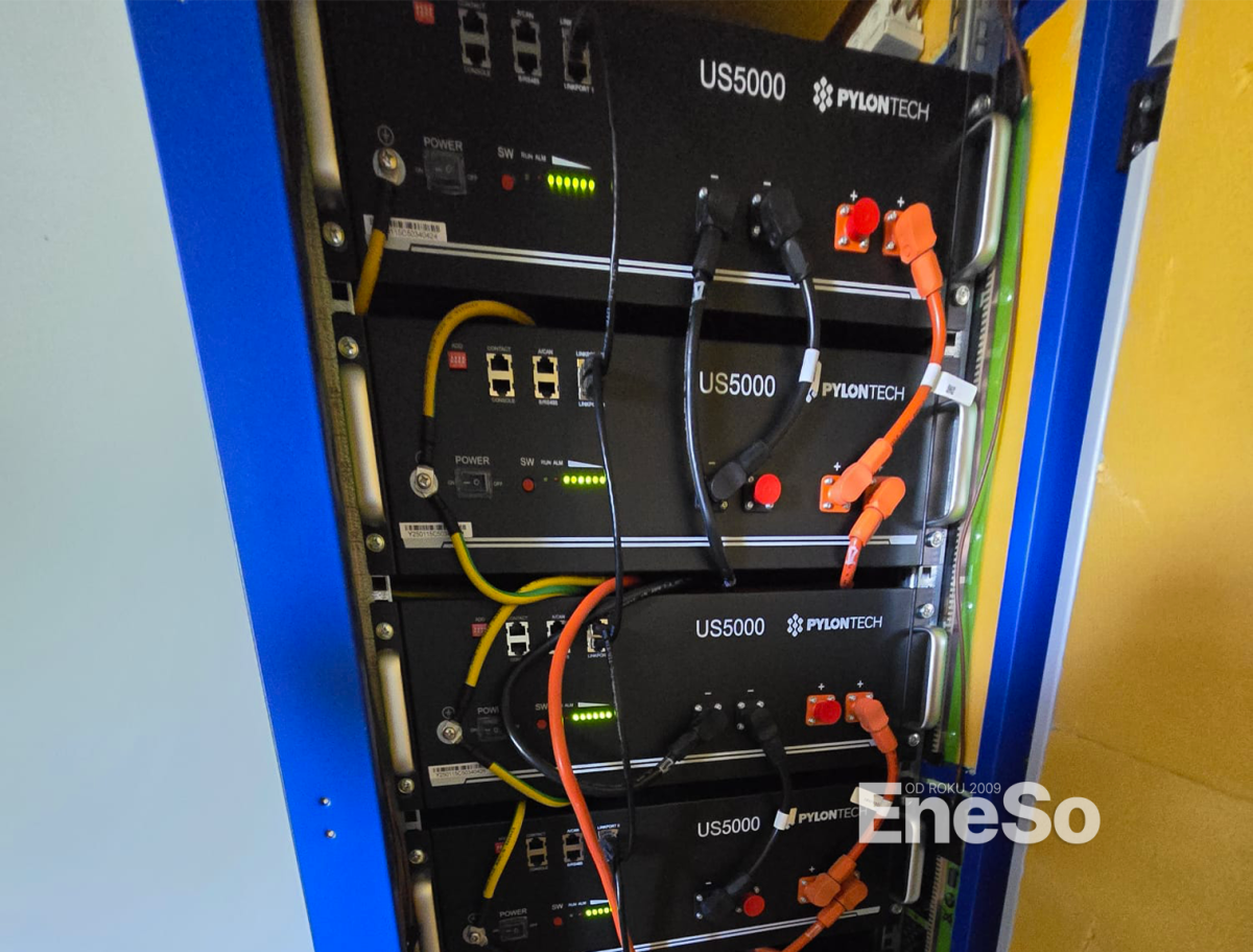 Installation einer Photovoltaikanlage mit der Leistung von 6 kWp, 3 einphasige Wechselrichter MultiPlus-II 48/3000/35-32 + Victron Energy MPPT solar regulator und 3 Batterien Pylon US 3000C - 3,6 kWh - Frýdlant - 2022