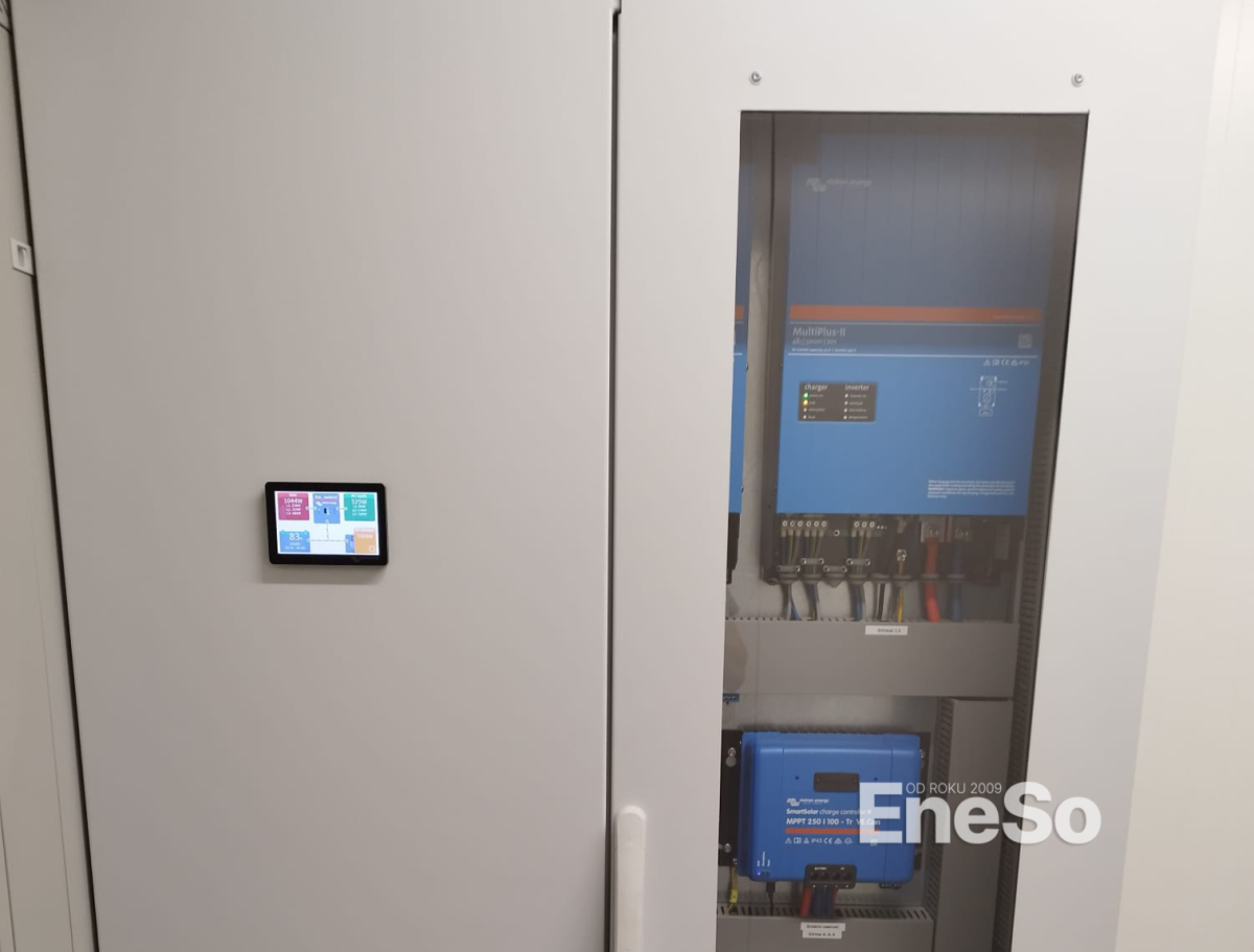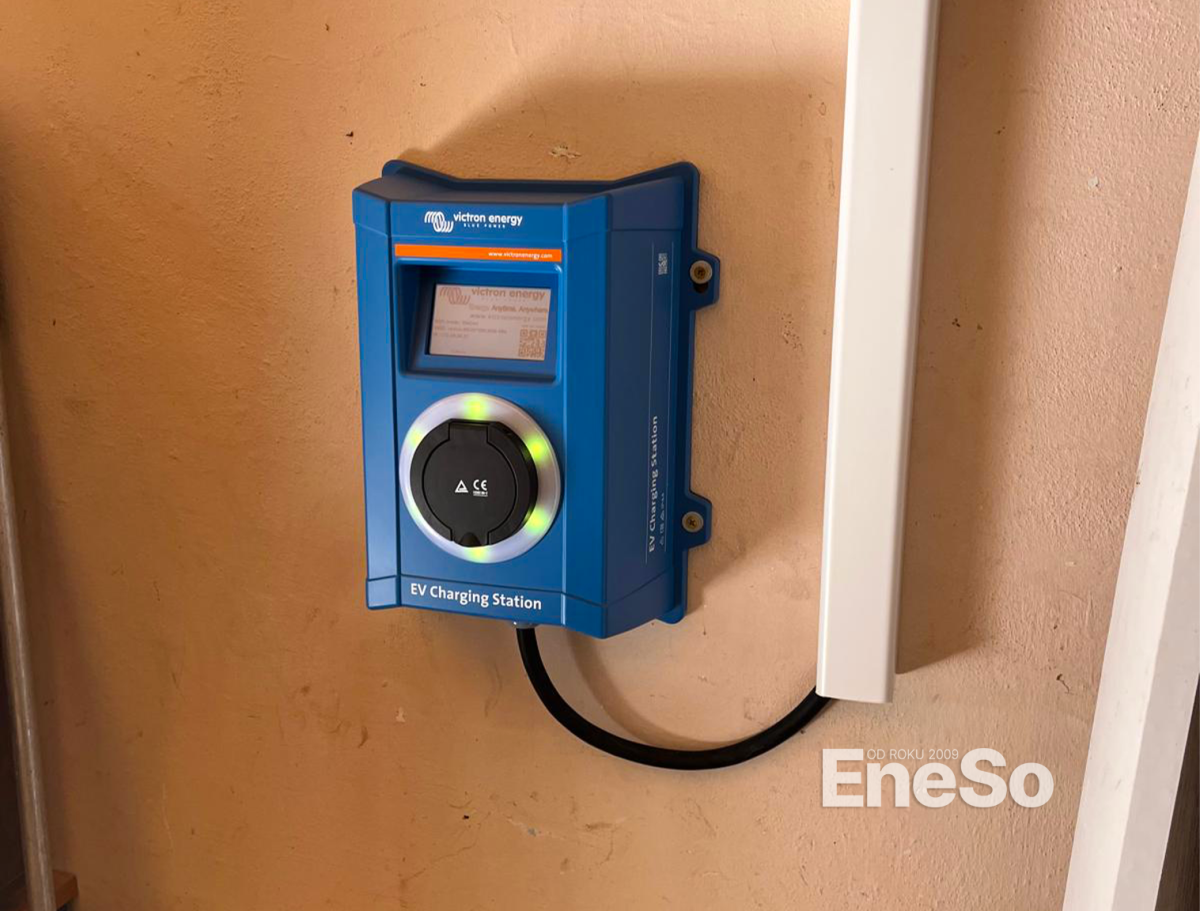 Installation einer Photovoltaikanlage mit einer Leistung von 7,77 kWp und einem Batteriespeicher von 43.2 kWh, realisiert in Zusammenarbeit mit der Firma Hobbytec. Bestandteil des Systems ist die Installation von drei Hybridwechselrichtern Victron MultiPlus-II 48/8000/110A. Im Rahmen des Projekts wurden außerdem zwei beidseitige 22 kW Victron EV-Ladestationen für Elektrofahrzeuge installiert. Das gesamte System wurde inklusive Netzanschluss und Fernüberwachung in Betrieb genommen. – Plzeň – 2025