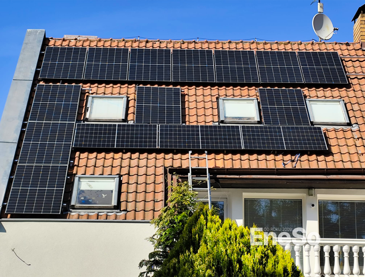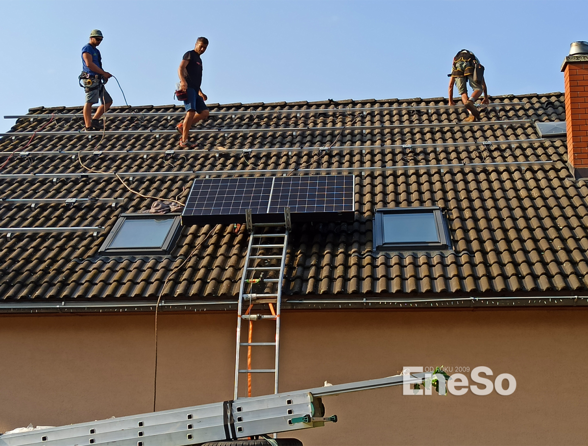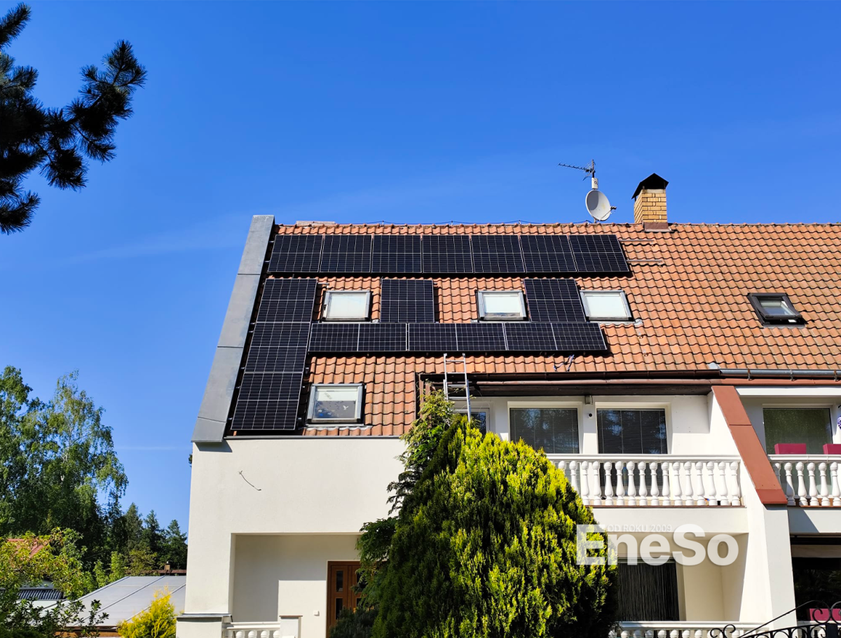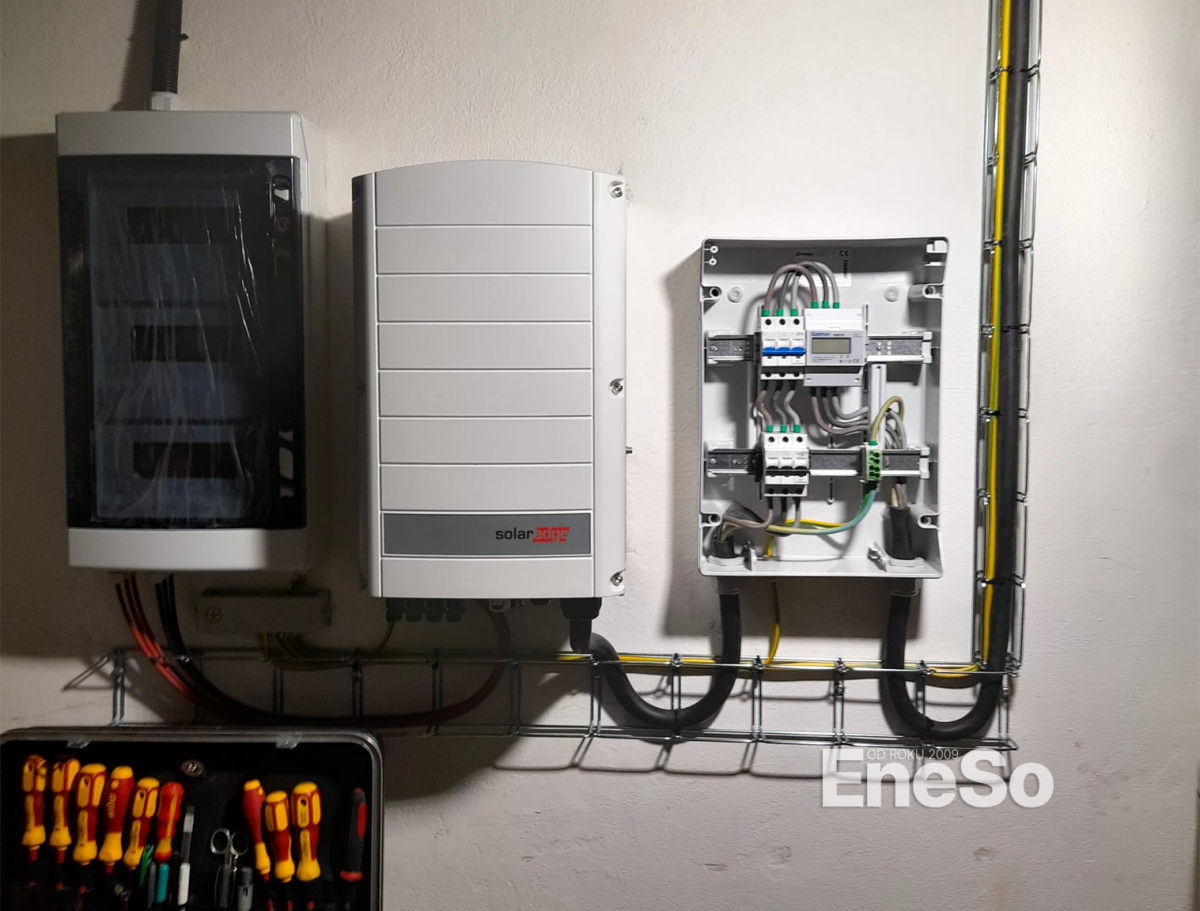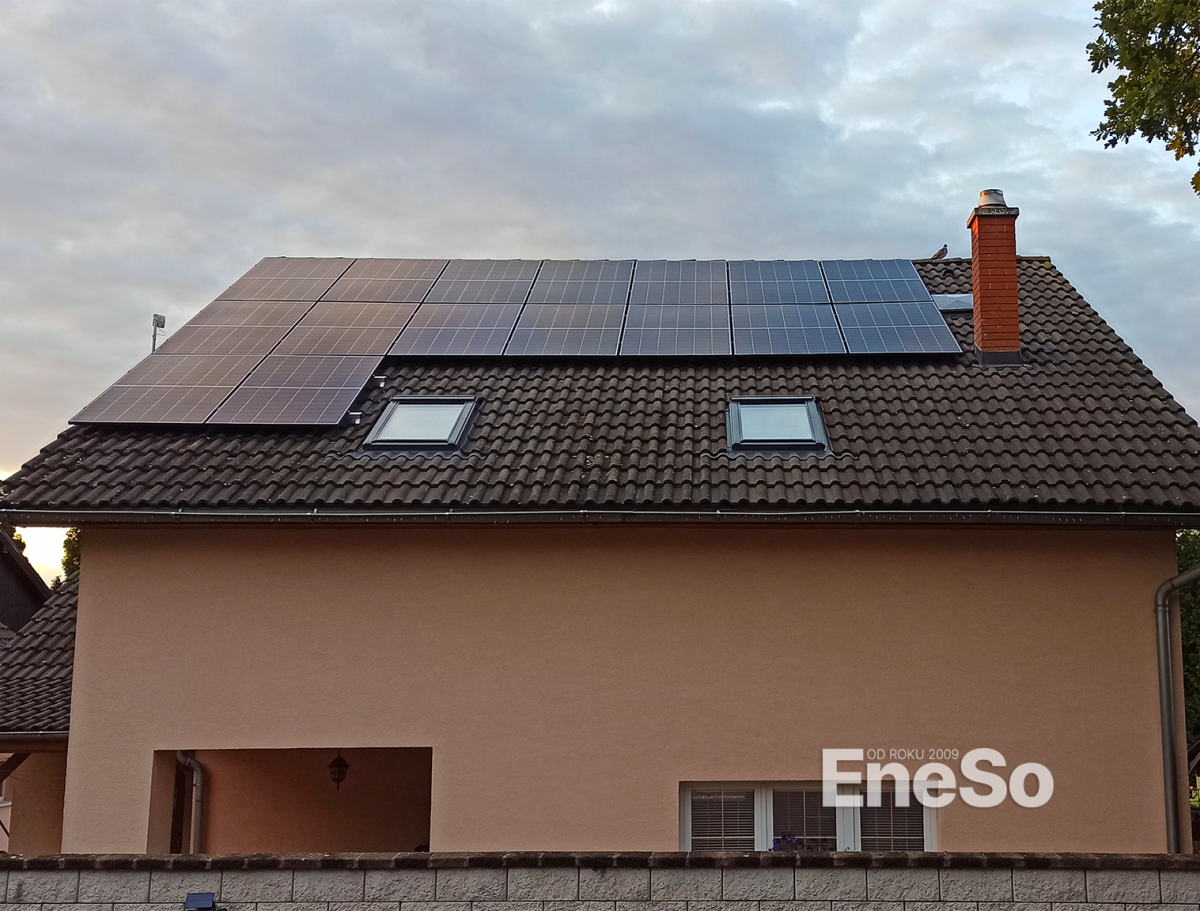 Installation einer Photovoltaikanlage mit 8 kWp Leistung – 16 Trina Vertex N Module (500 Wp) und 9,2 kWh Batteriespeicher (2× 4,6 kWh), mit SolarEdge-Technologie: Hybridwechselrichter SE10K, 16 Optimierer S500, Backup-Schnittstelle und eine 22 kW Wallbox zum Laden von Elektrofahrzeugen. Realisiert inklusive Anbindung an die bestehende Elektroinstallation des Wohnhauses. – Doubravčice - 2025