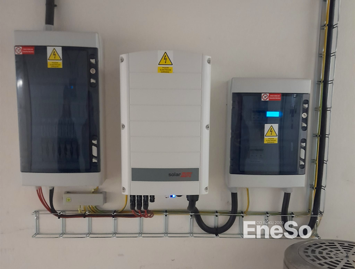 Installation eines Photovoltaiksystems auf einem Mehrfamilienhaus mit einer Leistung von 41,85 kWp – 93 Module Trina Vertex S TSM-DE09R.08 (450 Wp) und Batteriespeicher mit einer Kapazität von 27,60 kWh (6× SolarEdge Home 4,6 kWh) unter Nutzung der SolarEdge-Technologie: 2× Hybridwechselrichter SolarEdge Home Hub SE8K-RWB48, 1× Hybridwechselrichter SolarEdge SE17K-RW0T0BNN4, Leistungsoptimierer S440-1GM4MRM sowie Hot Water Controllers (HWC) zur Warmwasserbereitung aus überschüssig erzeugter Energie in den einzelnen Wohneinheiten. Realisierung einschließlich kompletter DC/AC-Elektroinstallation und Anbindung an die bestehende Elektroinstallation des Objekts. Náchod – 2025