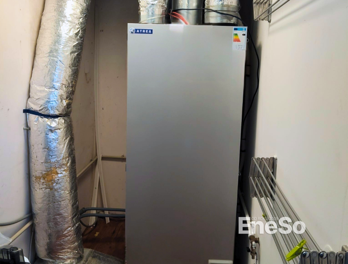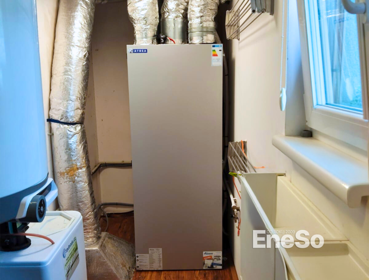 Installation eines Lüftungssystems mit Wärmerückgewinnung unter Verwendung der Innenlüftungsanlage Atrea DUPLEX RB5 mit digitaler Regelung und einer Außenkondensationseinheit vom Typ ATREA FG09. Inklusive kompletter Installation der Luftkanäle, Elektroanschlüsse und Inbetriebnahme. – Plzeň – 2025