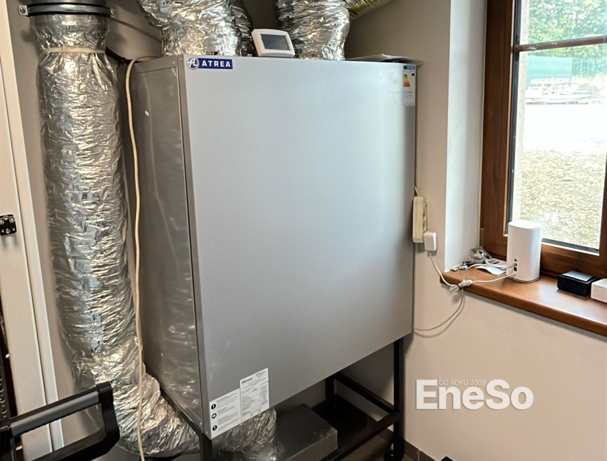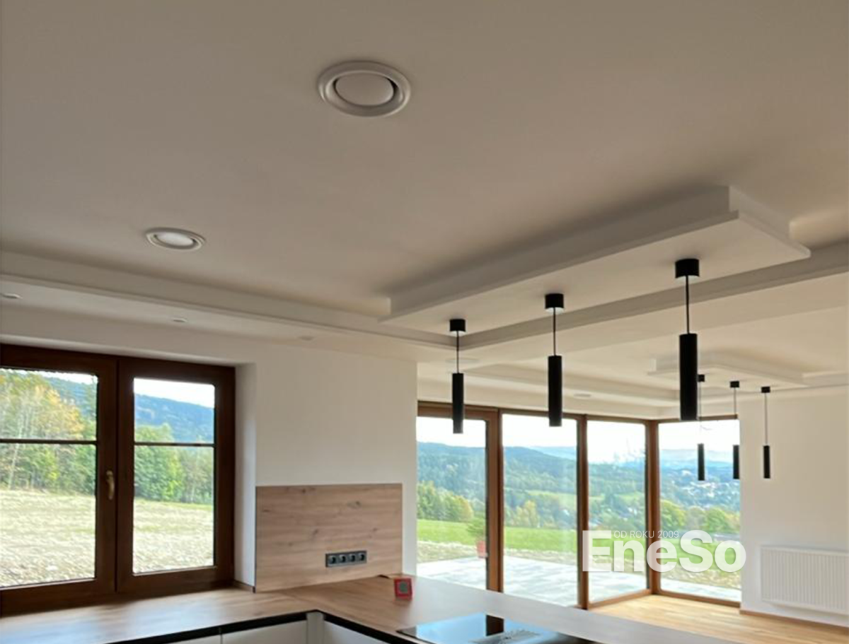 Installation eines Lüftungssteuerungssystems mit Wärmerückgewinnung in einem Neubau unter Einsatz der innenliegenden Wärmerückgewinnungseinheit Atrea DUPLEX 580 mit digitaler Regelung. Einschließlich kompletter Installation der Lüftungskanäle, Elektroinstallation und Inbetriebnahme. – Jistebsko – 2024