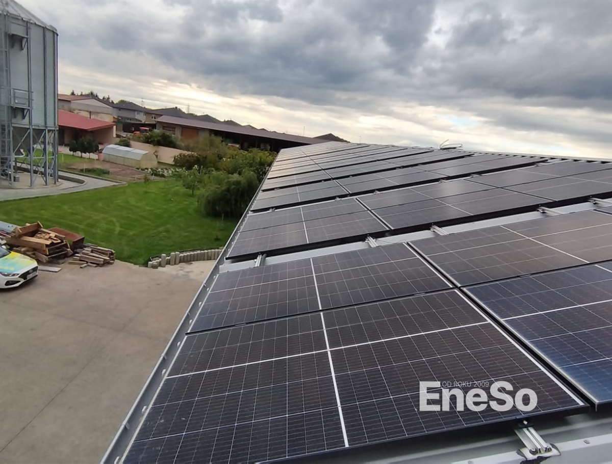 Installation einer Photovoltaikanlage auf einer landwirtschaftlichen Halle mit einer Leistung von 21,6 kWp – 48 Module Trina Vertex S+ TSM-NEG9R.28 (450 Wp) unter Verwendung der Victron Energy Technologie. Das System ist mit Victron MultiPlus-II 48/5000/50A Wechselrichtern, Victron SmartSolar MPPT-Reglern (VE.Can) ausgestattet und wird über die zentrale Steuereinheit Victron Cerbo GX geregelt. Realisierung inklusive kompletter DC/AC-Elektroinstallation, Unterkonstruktion für ein Blechdach, Absicherung und Überspannungsschutz. – Polerady u Prahy – 2024