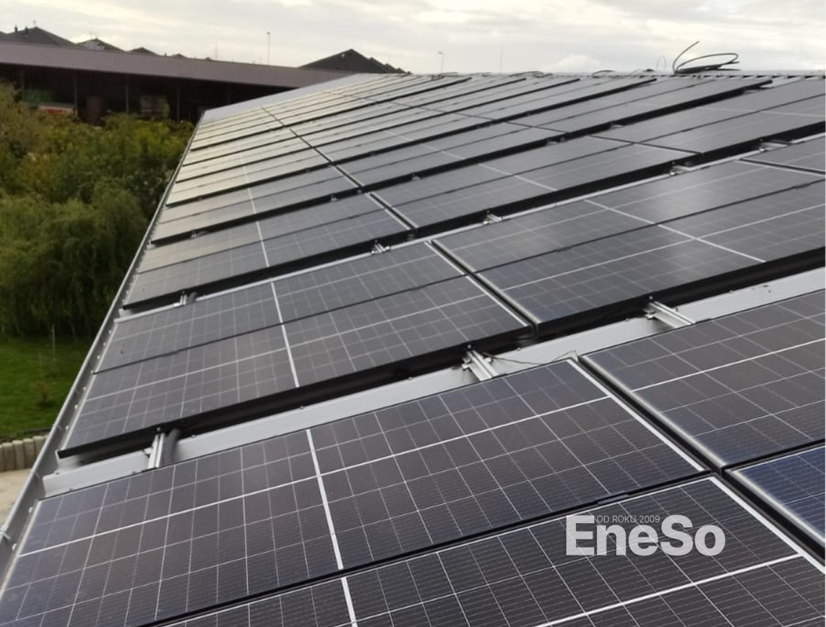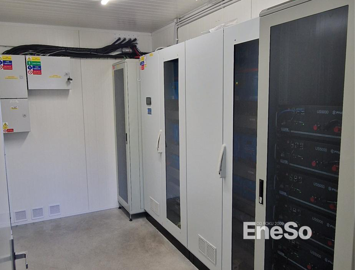 Installation eines Photovoltaiksystems mit 9,6 kWp (Risen mono RSM120-8-400M-Module) und 28,8 kWh Speicher (PylonTech US5000C) unter Verwendung der Victron-Technologie. Das Projekt umfasste die anschließende Integration in das Stromnetz, die Inbetriebnahme und den Systemstart. Die Module wurden auf einer Blechhalle des Grundstücks montiert. - Polerady - 2023