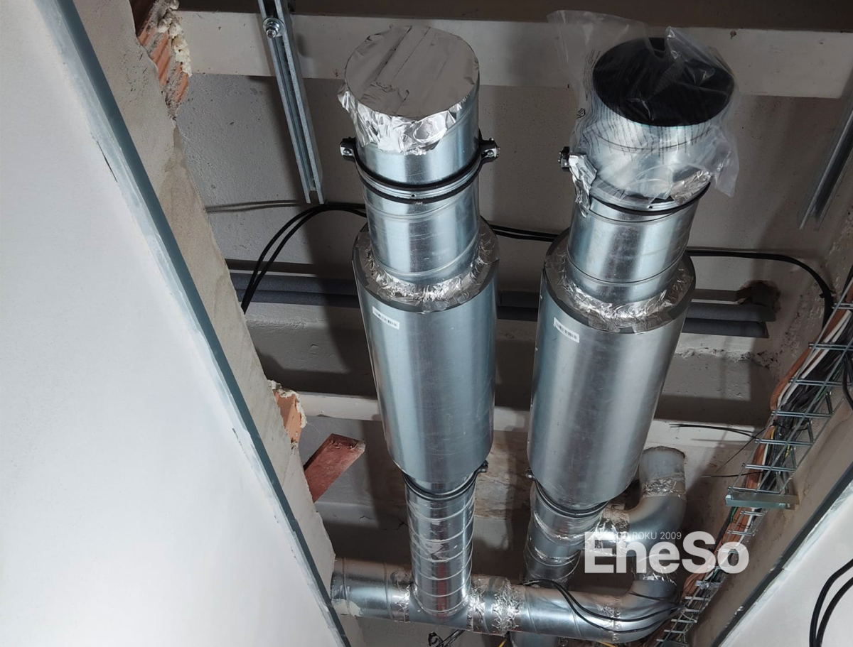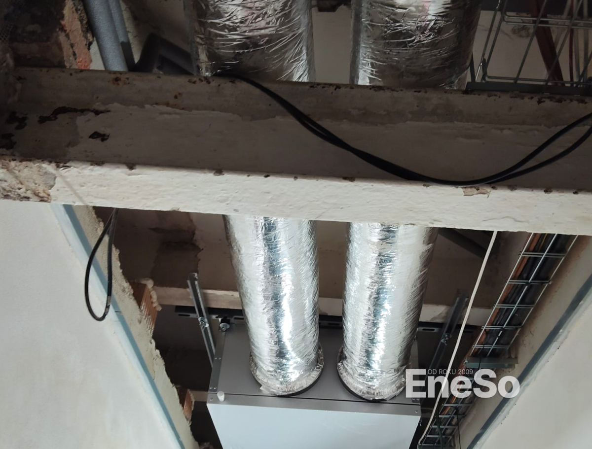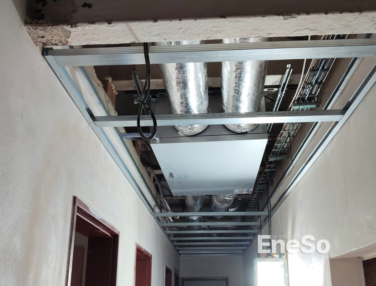 Installation eines ATREA-Rekuperationssystems für die Belüftung und Beheizung des Gebäudes mit Thermostaten und CO2-Sensoren und anschließender Anschluss an das Heizsystem und die Warmwasserbereitung - Hejnice - 2016
